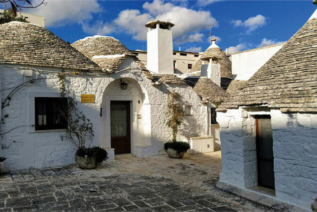 Frühstück, Castellana (Führung durch die Grotten von Castellana), Mittagessen, Alberobello (Spaziergang durch die Trulli-Siedlungen), Abendessen in der Antica Masseria Martuccio