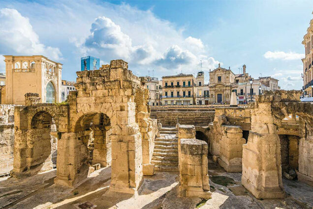 Abholung vom Flughafen Brindisi, Lecce (Stadtführung), Mittagessen, Gallipoli (Stadtführung), Transfer ins Hotel in Mesagne, Abendessen im Hotel Antica Masseria Martuccio.